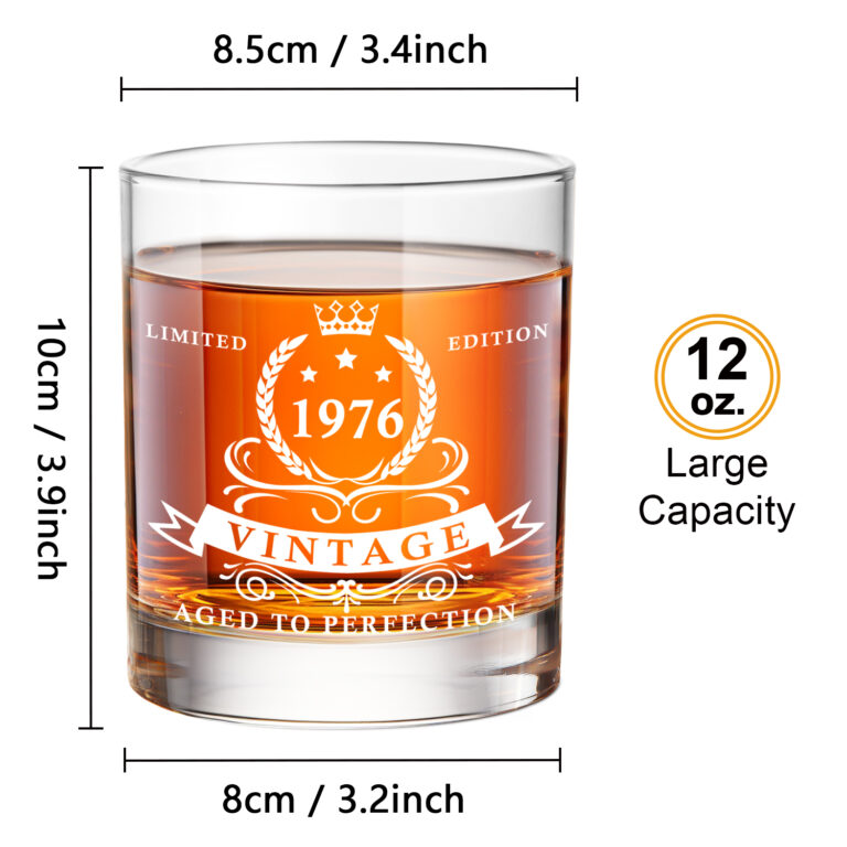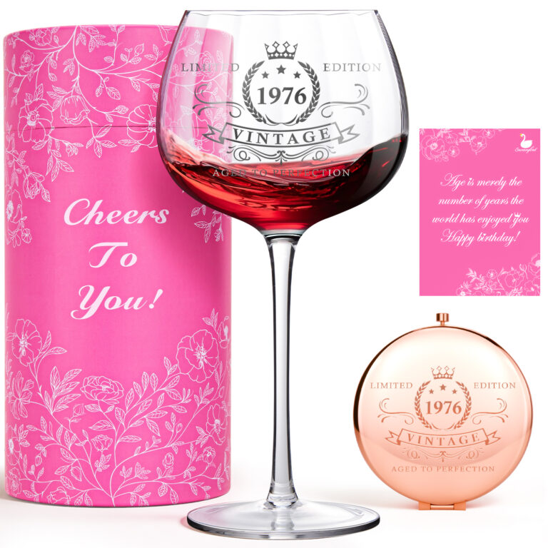 50TH Birthday Gifts for Women – 1976 Vintage Wine Glass & Matching Mirror, Elegant Present for Mom, Friend, Daughter, Sister or Wife – Celebrating 50 Years of Love and Life